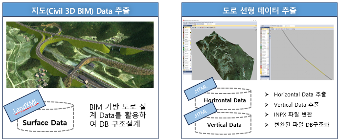 아이티파인은 자율주행을 위한 미래도로 시뮬레이션 데이터 생성 프로세스와 이에 사용될 솔루션을 선정하여 AutoDesk사의 Civil 3D에서 BIM 기반 도로 설계 데이터 형식을 분석하여 도로망 및 지도 데이터를 계산하여 추출하고, VISSIM 프로그램 내에서 네트워크 구성을 위한 도로망 데이터를 분석하여 활용 가능한 데이터로 변환하는 프로그램을 개발 특허 출원 하였습니다.